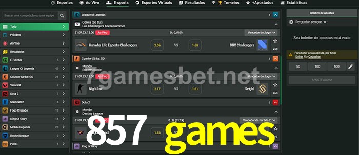 O 857 games oferece uma grande seleção de opções de apostas em e-sports com probabilidades competitivas